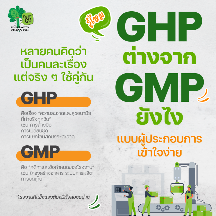 - GHP คือระบบสุขอนามัยที่ทำให้การผลิตปลอดภัยจริงในชีวิตประจำวัน