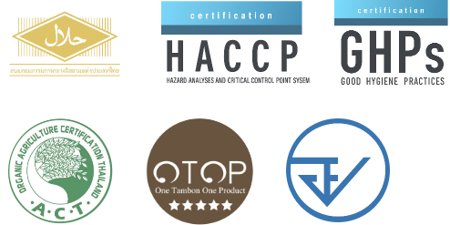 ทั้งหมดนี้อยู่ภายใต้ มาตรฐานการผลิตที่ได้รับการรับรอง Halal, Organic Product, GHP, HACCP และ Thai FDA คุณจึงมั่นใจได้ทั้งในเรื่องคุณภาพ ความปลอดภัย และความน่าเชื่อถือ