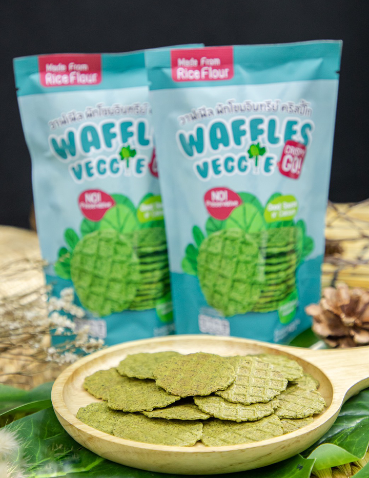 ผักโขมอบกรอบ ผักโขมเป็นผักที่มีคุณค่าอาหารทางโภชนาการสูง จึงได้รับความนิยมในกลุ่มผู้บริโภคที่รับประทานผัก แต่ก็มีกลุ่มผู้บริโภคที่สนใจในคุณค่าอาหารของผักโขมแต่ไม่ชอบรับประทานผักสดอยู่ไม่น้อย เลขสารบบ : 6020376060012 ชื่อผลิตภัณฑ์ภาษาไทย : วาฟเฟิล ผักโขม คริสปี้โก ชื่อผลิตภัณฑ์ภาษาอังกฤษ : Waffle Veggie Crispy GO วาฟเฟิล ไบท์ วาฟเฟิลอบกรอบ น้ำหนักสุทธิ : 40 กรัม ขนมทานเล่น สำหรับคนรักสุขภาพ ทำจากแป้งข้าวเจ้าและผักขมออแกนิก น้ำตาลน้อย ไม่มีวัตถุกันเสีย **เด็กทานได้ ไม่รู้ว่าเป็นผักเลย* “Crispy GO” จะสามารถตอบโจทย์กลุ่มผู้บริโภคสายเฮลท์ตี้ โดยการแปรรูปผักโขม มาเป็นอาหารทานเล่นรสชาติอร่อยที่เด็กทานได้ ผู้ใหญ่ทานดี ทางเลือกดีๆ เหมาะสำหรับคนที่รักสุขภาพ ผักโขมอบกรอบเป็นสแน็คที่มีไฟเบอร์เยอะมาก นอกจากนี้ยังอุดมไปด้วยแคลเซียม ธาตุเหล็ก ซึ่งก็ตรงตามความตั้งใจที่จะทำให้เป็นอาหารทานเล่น และได้ประโยชน์ควบคู่ โดยทั้งหมดนี้เกิดจากความรักที่มีต่อผักอินทรีย์ในฟาร์มของเรา และส่งผ่านสิ่งดีๆ เหล่านี้ไปถึงมือผู้บริโภค ซึ่งสิ่งนี้คือจุดที่สำคัญ ที่ทำให้เกิดเป็น Crispy GO มาจนถึงปัจจุบัน